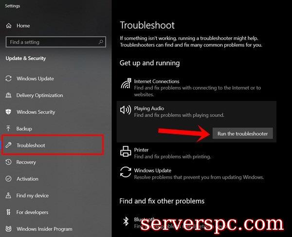 在Getup和运行部分下,您会注意到播放音频选项。单击它以提供运行故障排除选项。