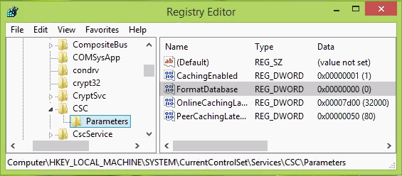 hkey_local_machine \ system \ currentControlset \ services \ csc \ parameters