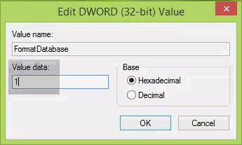 现在,在“值数据”框中添加值数据为1,并确保选择十六进制作为基础。