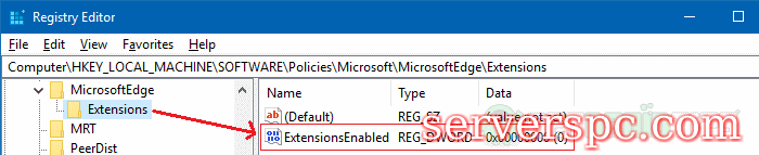 hkey_local_machine \ Software \ policies \ Microsoft \ MicrosoftEdge \ Extensions