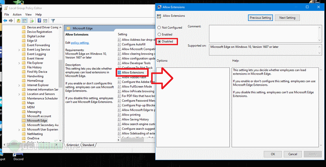 您可以使用本地组策略编辑器允许或不允许用户某些功能,在这种情况下为员工。因此,现在我们将禁用Microsoft Edge的扩展。