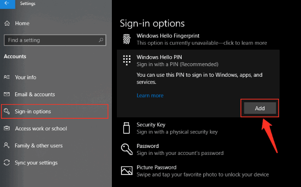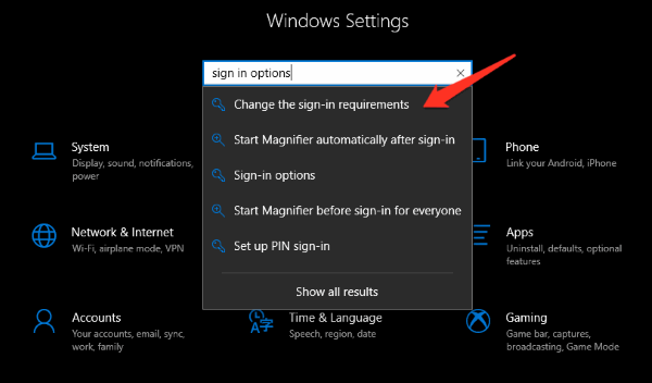 您可以在“设置”窗口中禁用它。只需唱歌选项,并禁用PIN功能即可。