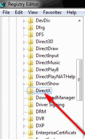 现在导航到HKEY_LOCAL_MACHINE软件Microsoft。在左窗格中,选择DirectX文件夹。