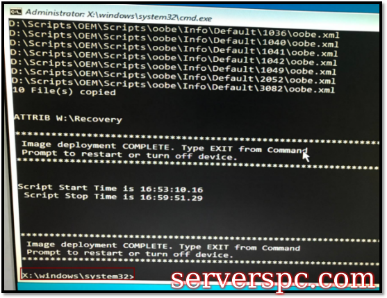 当屏幕显示X:\ widnows \ System32时,请注意重新加载过程已完成。TypeExit并按键盘上的Enter键将其退出。 (闪烁后首次需要10-12分钟) 系统启动后,将进入出厂测试模式。您将在桌面屏幕上看到清理文件。双击它以在第二启动时首先输入语言接口和用户模式。