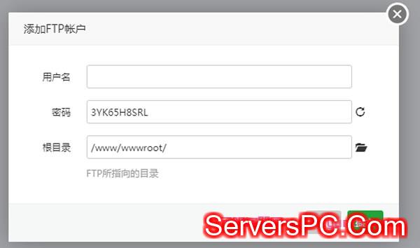 您在用宝塔面板创建FTP账号时,可根据页面提示输入以下参数,点击提交即可创建成功。