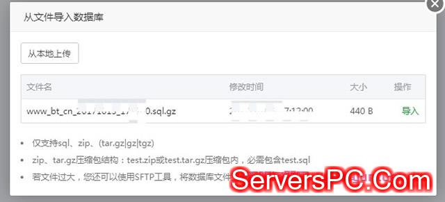 可以选择本地上传,或选择已备份的文件还原。默认数据库路径为/www/backup/database。以上备份导入均是使用mysqldump。