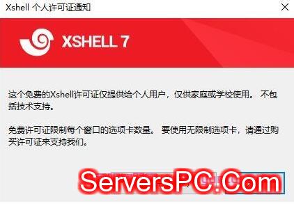 我们打开免费版的xshell软件,就会收到下图2所示的提示,告知我们当前版本的Xshell选项卡数量受到限制。