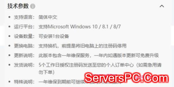 软件具体技术参数如下图,可安装1台电脑、支持换机注册,购买后五个工作日内会将注册码发送到我们的个人订单中心中。