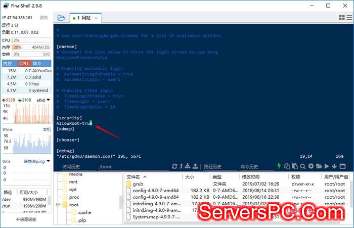 安装完成后使用 vi 以 root 权限编辑/etc/gdm3/daemon.conf