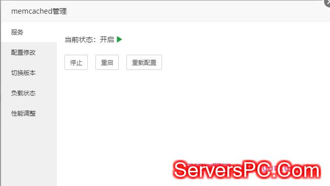 2、在Memcached管理页面,切换到服务选项卡,点击对应的操作按钮即可完成操作。例如,停止或重启当前Memcached服务和重新加载Mecached配置文件。另外还可以进SSH输入以下命令来完成重载、重启等操作。