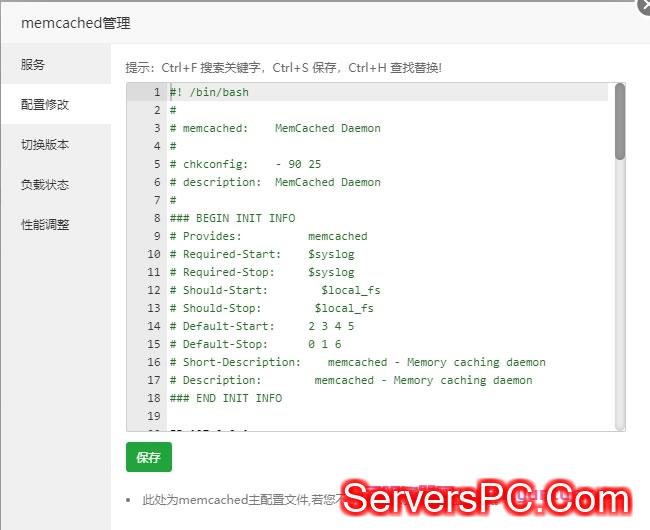 3、如果要修改Memcached配置,则可切换到配置修改选项卡。