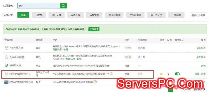1、在宝塔-软件商店中安装好Nginx免费防火墙,并且开启防火墙。