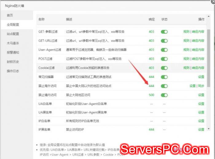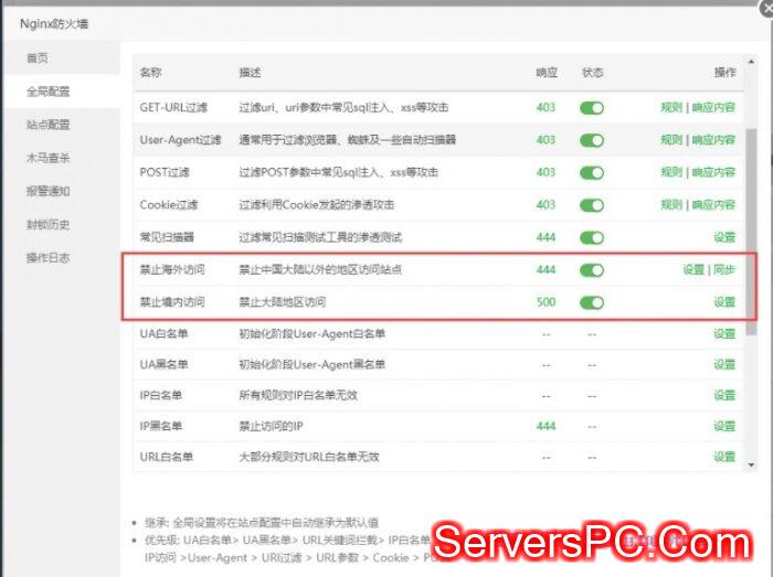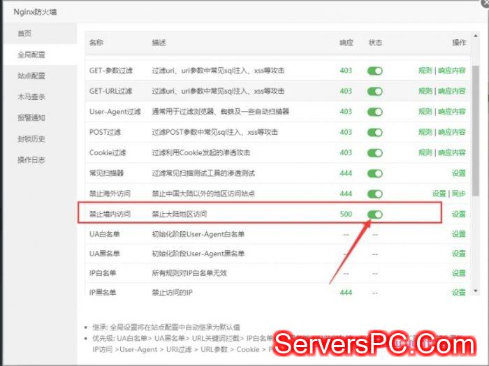 2.1 禁止海外访问 (全局开关+站点开关=开启)