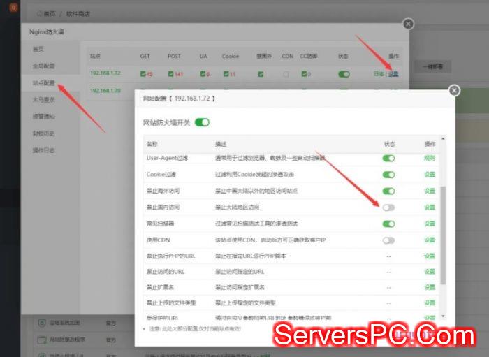 2.1 禁止境内访问 (全局开关+站点开关=开启)