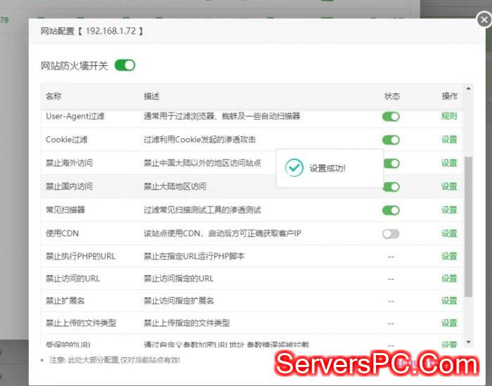 两边开启成功之后才是真正的给这个网站开启了禁止海外访问