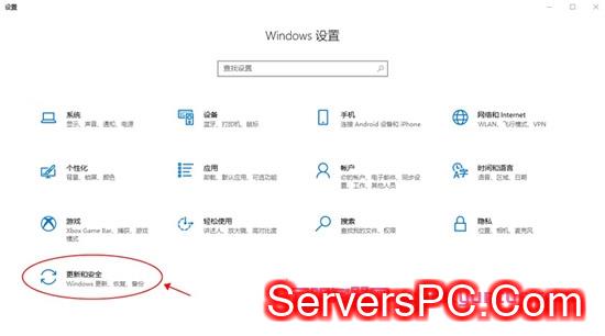 点击“设置”后打开如下图界面,点击“更新和安全”;
