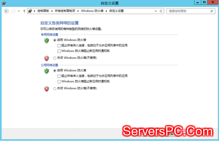 1. 首先点击桌面左下角的Window图标,点击“控制面板“,然后选择“windows防火墙”会弹出防火墙的详细页面,如下图所示: