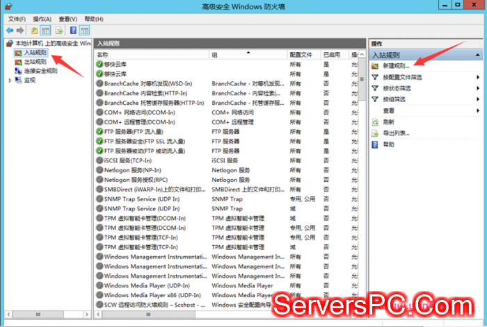 在Windows Server 2012系统中,如果用户想在防火墙中开通一个端口,您可以按以下步骤执行: