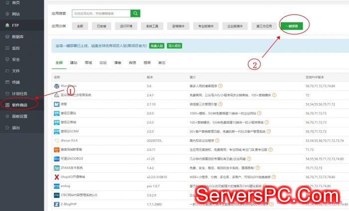 方法1:用浏览器访问宝塔面板,单击左侧菜单栏的“软件商店”,然后选择“一键部署”直接下载安装所需的网站程序,比如:WordPress、苹果cms、Joomla等。