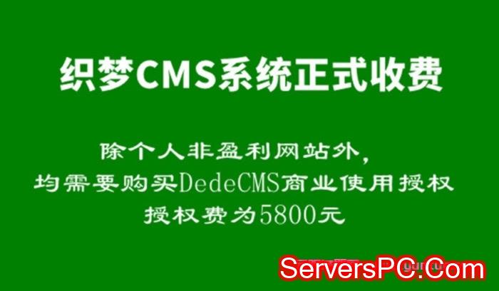 dedecms(织梦)官方发布公告:除个人非盈利网站外,均需要购买DedeCMS商业使用授权,授权费为5800元。针对逾期未获得授权的网站,我们将保留民事索赔权利,届时除了需需要支付商业使用授权费外,您还需承担相应的合理维权费用。