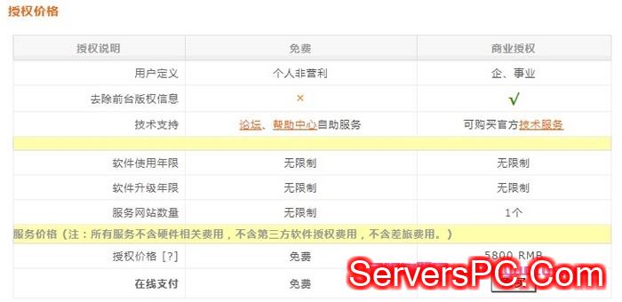 此公告一出,建站圈立即炸开了锅,为什么一个看似正常的软件授权收费公告,在圈内引起这么大的反响?同时,我们在其官网上也看到了收费明细,商业授权5800元,仅能使用一个网站,而一定要注意“个人非盈利”。