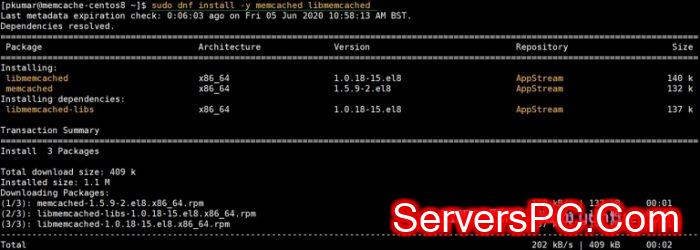 由于Memcached软件包及其依赖项位于AppStream存储库中,因此我们将使用默认的软件包管理器安装Memcached,如下所示: