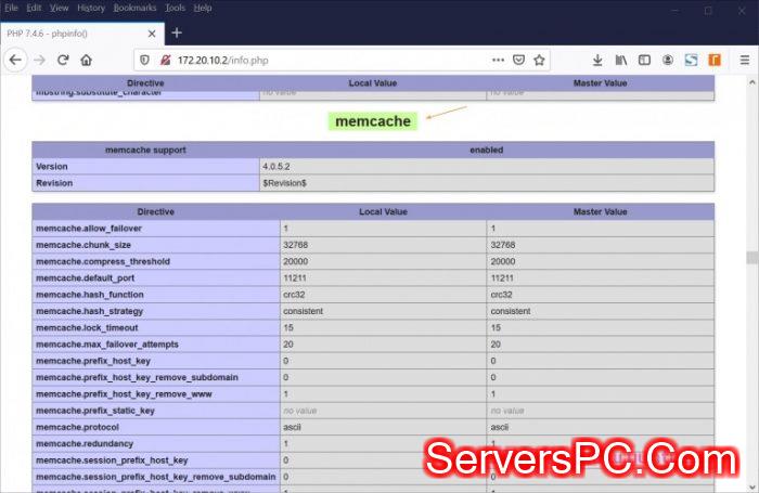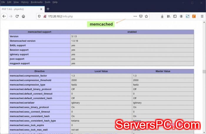 向下滚动,然后在Memcached部分,该部分显示有关Memcached的所有信息。