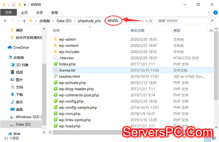 3、弹出的就是我们的网站根目录文件夹WWW,在这里我们我们可以将自己的网站源码上传到WWW根目录,这里我们上传的是WordPress程序。
