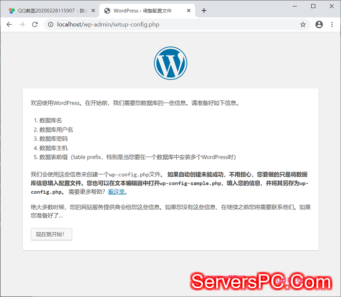 5、打开浏览器输入http://localhost/我们就可以访问网站了,这个是WordPress程序的安装界面。