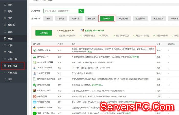 1.首先登陆宝塔面板,打开“软件商店”,然后选“宝塔插件”,找到“宝塔网站加速”,安装它。
