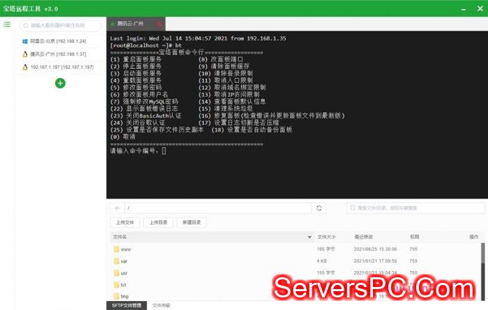 堡塔SSH终端是一款同时支持SSH和SFTP客户端的免费软件SSH终端管理以及文件传输合二为一,操作更方便,工作更高效,使用堡塔SSH终端你可以在同屏切换SSH和SFTP界面,使用命令行的同时还可以快速上传或下载文件,非常方便。