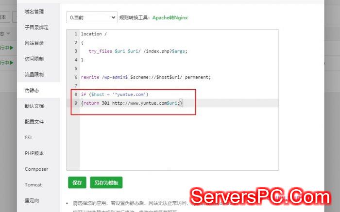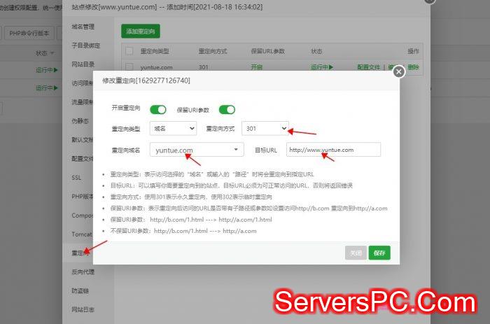 宝塔面板301重定向怎么设置?我们在使用宝塔面板成功建站之后为了权重更加集中,云服务器网(yuntue.com)小编建议大家将带WWW的域名301重定向到不带WWW的域名,或将不带WWW的域名301重定向到带WWW域名,或者需要更改新域名的话也需要将旧域名301重定向跳转到新域名,这些301 重定向都可以在宝塔面板中设置。