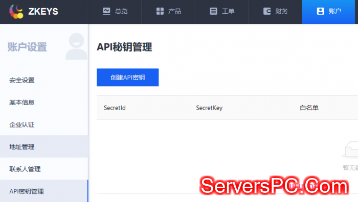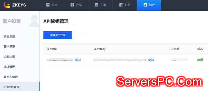 创建API密匙