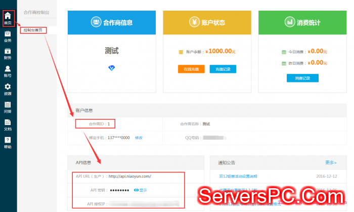将合作商ID,接口地址,接口密钥填写到相应位置,然后点击保存