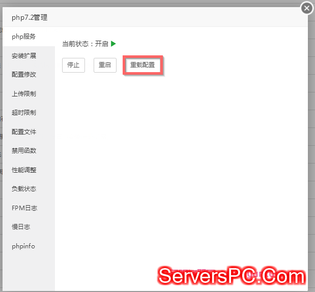 确认之后,在打开刚才对应的PHP版本的“设置”,选择“重载配置”