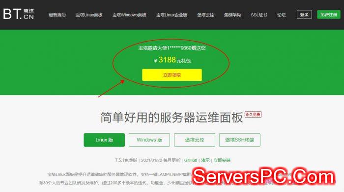 点击打开宝塔面板官网,点击【立即领取】,显示“领取成功”就可以了。