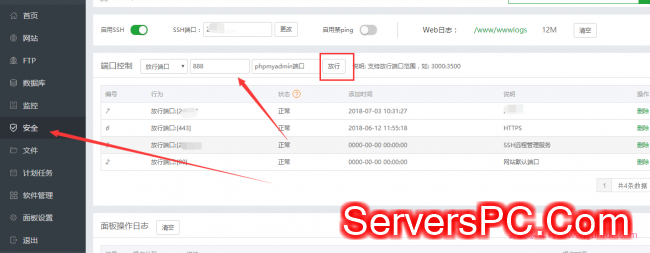 在宝塔面板–安全选项卡放行888端口,如下图: