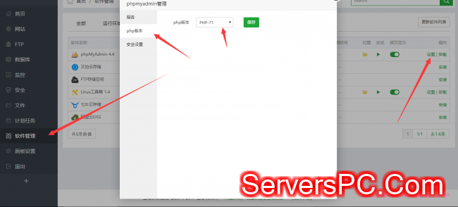 在这里将PHP版本设置一下然后保存即可!注意,PHP版本最好设置7.0及以上版本!