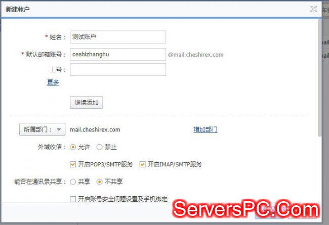 在左侧我们添加一个其他的邮箱帐号作为我们的网站发信邮箱(不要直接使用管理员帐号发信)