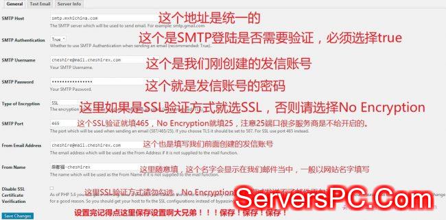 创建好我们回到wordpress插件配置界面,打开SMTP插件,根据我下图填写信息