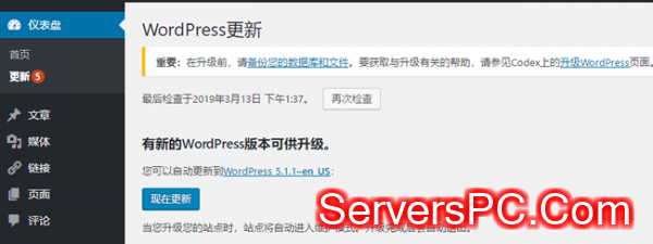 当有新的wordpress版本出现时,网站后台就会有升级提醒,只要点击进去,点击“现在更新”就可以了