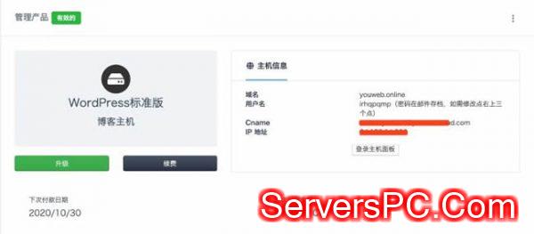 2、主机(Web服务器,用来存放网站程序、图片等,教程用的是优网主机的博客主机标准版)