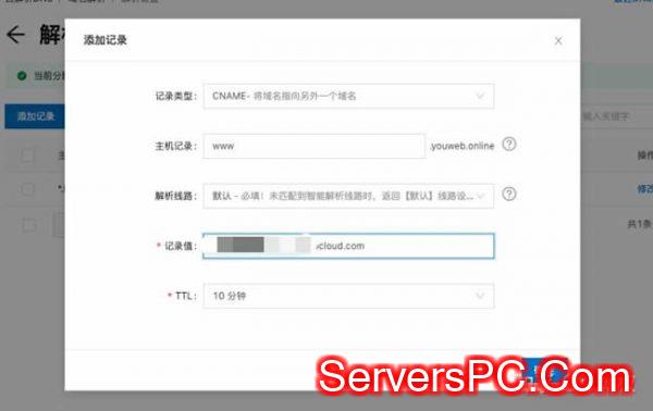 也就是在DNS服务器白自己的域名和主机的IP对于关系记录起来,先找到自己主机的CANME地址,如图打码的部分: