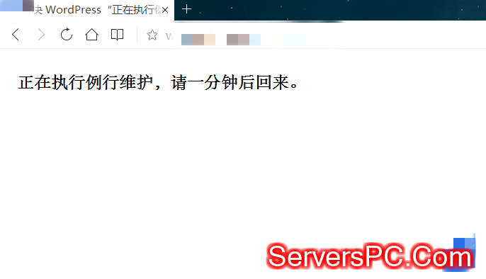 WordPress在升级程序、主题、插件时,都会先切换到维护模式,也就是显示 “正在执行例行维护,请一分钟后回来(Briefly unavailable for scheduled maintenance. Check back in a minute)”,如果升级顺利,也就几秒左右就恢复正常;但是如果由于网速不佳等原因导致升级中断,WordPress就会一直停留在维护模式,不论前台还是后台,都一直显示“正在执行例行维护,请一分钟后回来“。