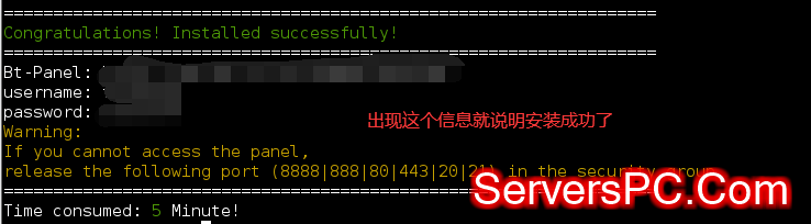 3. 我们耐心等待一会儿,等宝塔面板自动安装完成(中间若出现是否安装*Y/N?时,我们只需要输入y就行了)。