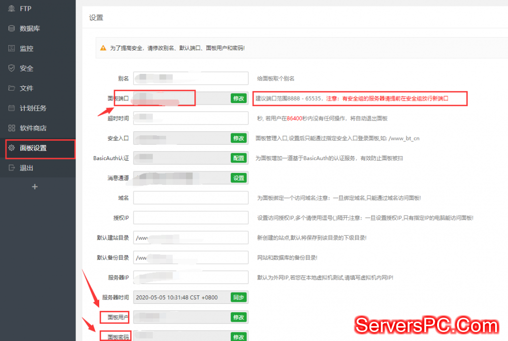 6.为安全起见,建议修改你的用户名和密码,以及面板默认端口。