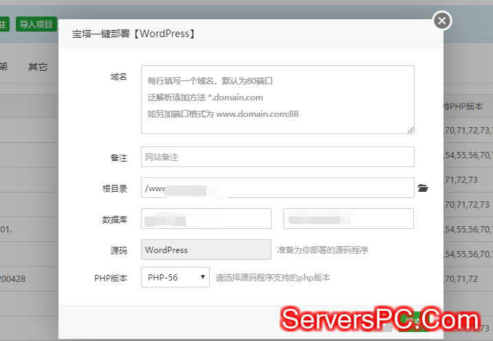 15.当然,如果你要做的是Wordpress网站,那么建议你先不要添加站点(即省略以上添加站点的步骤),直接在面板左侧“软件商店”选择一键 部署WordPress即可(这时会帮你自己创建数据库,或者手动更改也行),同时也会自动创建站点,部署WordPress成功后,回到你的“网站”目录里就可以看到自己的站点了。