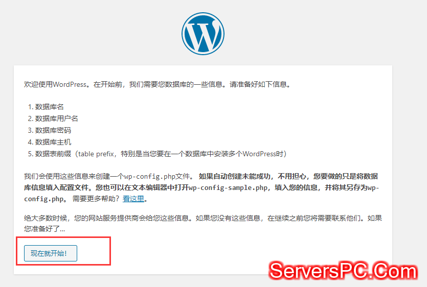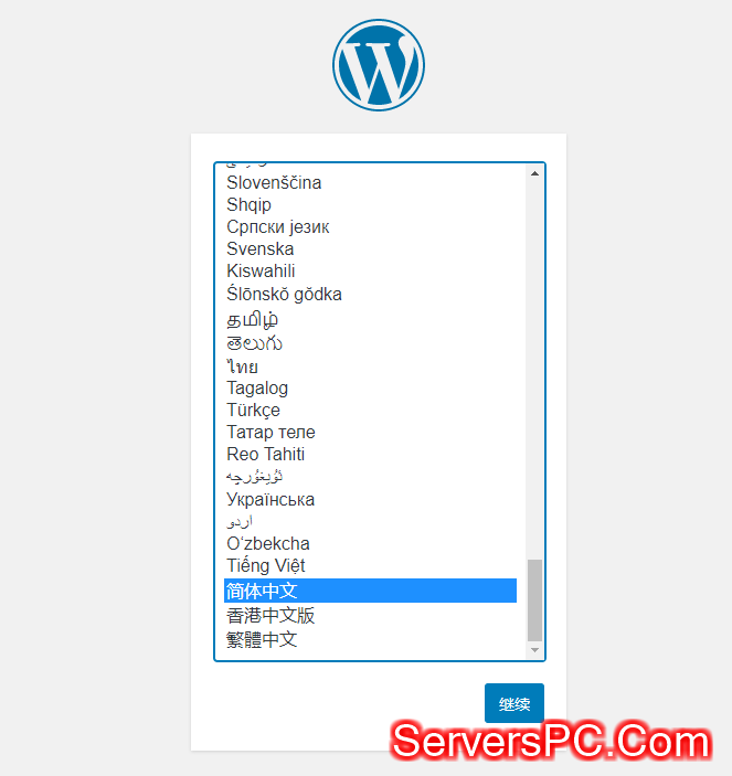 9.在线安装WordPress网站程序的时候,先选择语言“简体中文”,然后填写数据库名和密码(就是上一步叫你保存的)