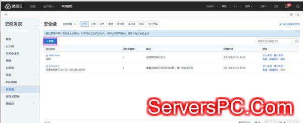 1、进入腾讯云后台,新建安全组: