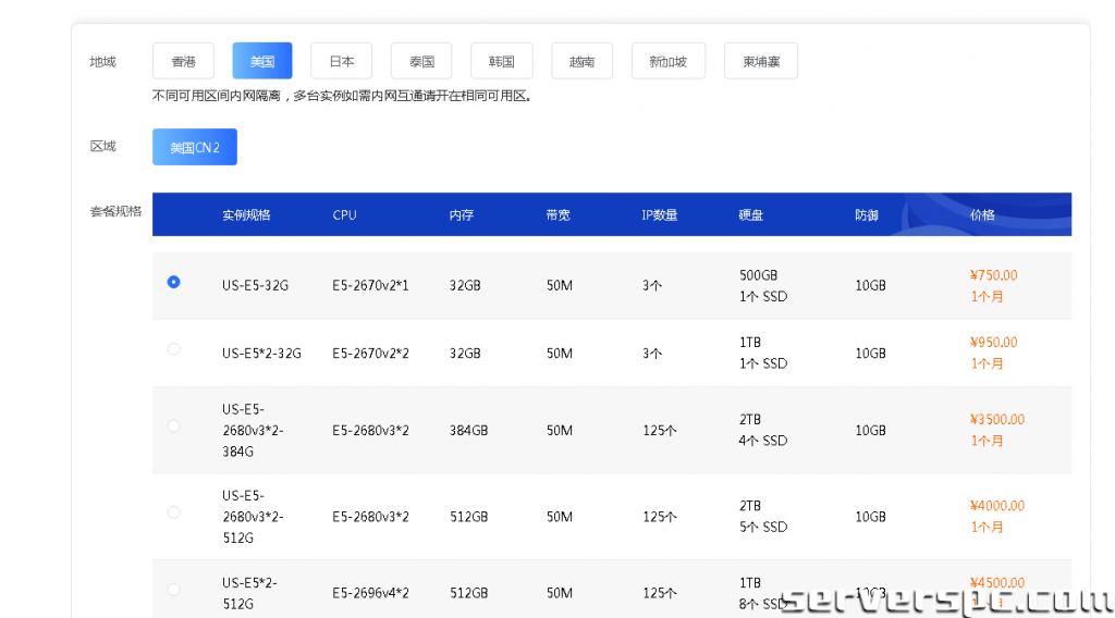 硬件配置:E5-2670处理器+32G内存+50Mcn2独享带宽,月费107美元起